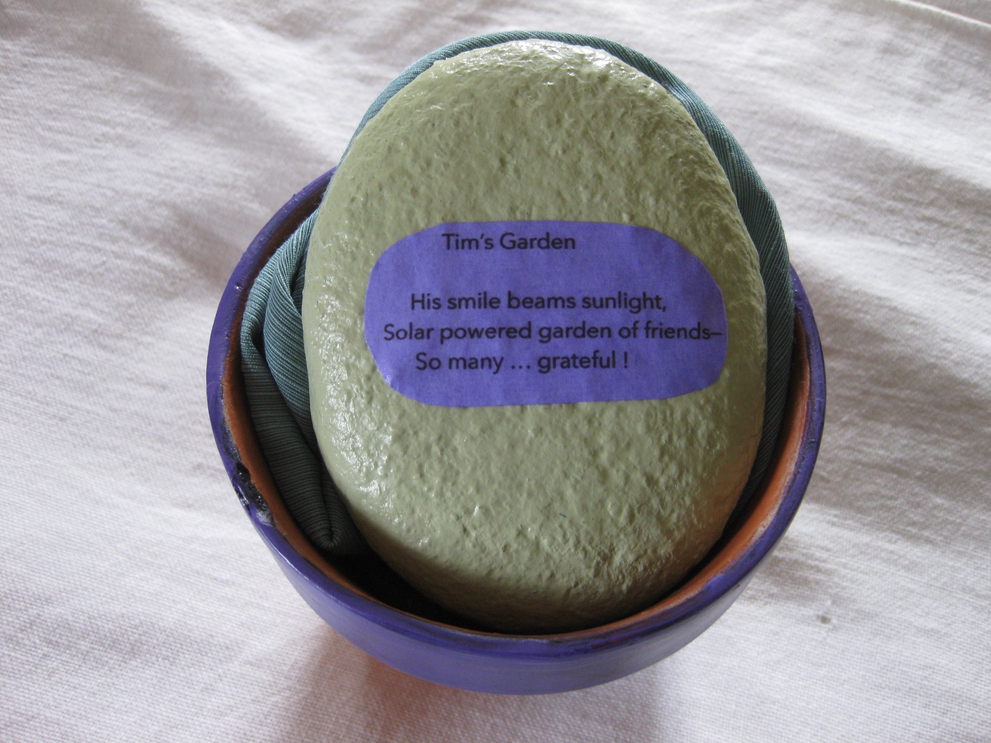 I was commissioned to write a haiku in memory of a very old, very large oak tree that had to be taken down. To make it extra special, I had the haiku engraved on a faux rock. The person who commissioned the haiku from me was thrilled.